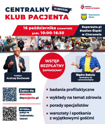 Fundacja „Z sercem do Pacjenta” zaprasza mieszkańców Śląska – i nie tylko – na wydarzenie, które łączy w sobie troskę o zdrowie, edukację i radość wspólnego spędzania czasu. Już 16 października (czwartek) w godz. 10.00–16.30 na Superauto.pl Stadionie Śląskim w Chorzowie odbędzie się trzecia edycja Centralnego Klubu Pacjenta. Wstęp jest bezpłatny (zapisy: www.zsercemdopacjenta.pl), a na uczestników czeka różnorodny program skierowany do osób w każdym wieku. Współorganizatorem tegorocznej edycji jest Marszałek Województwa Śląskiego, Wojciech Saługa.